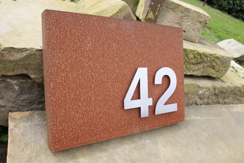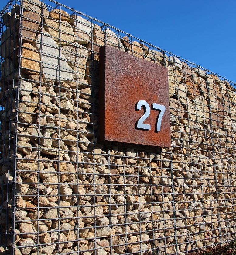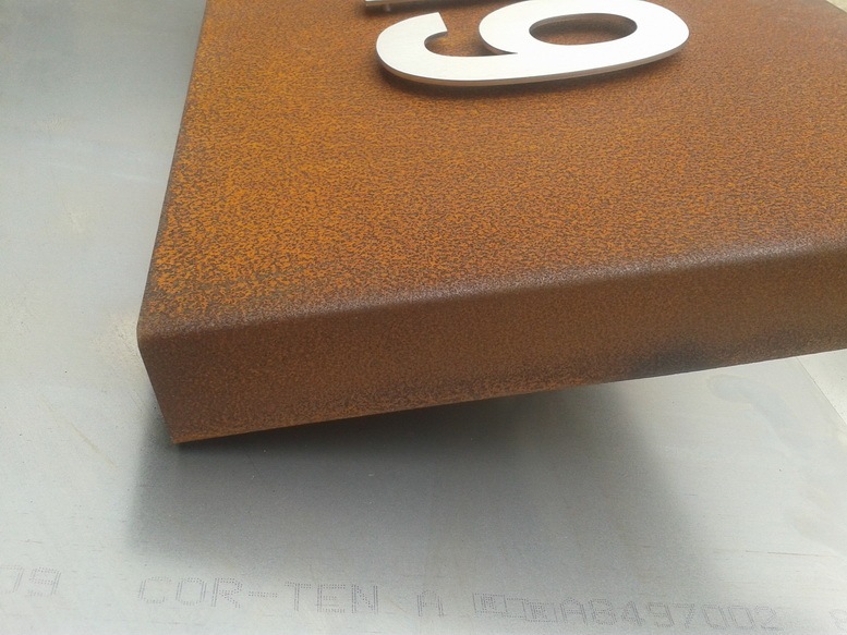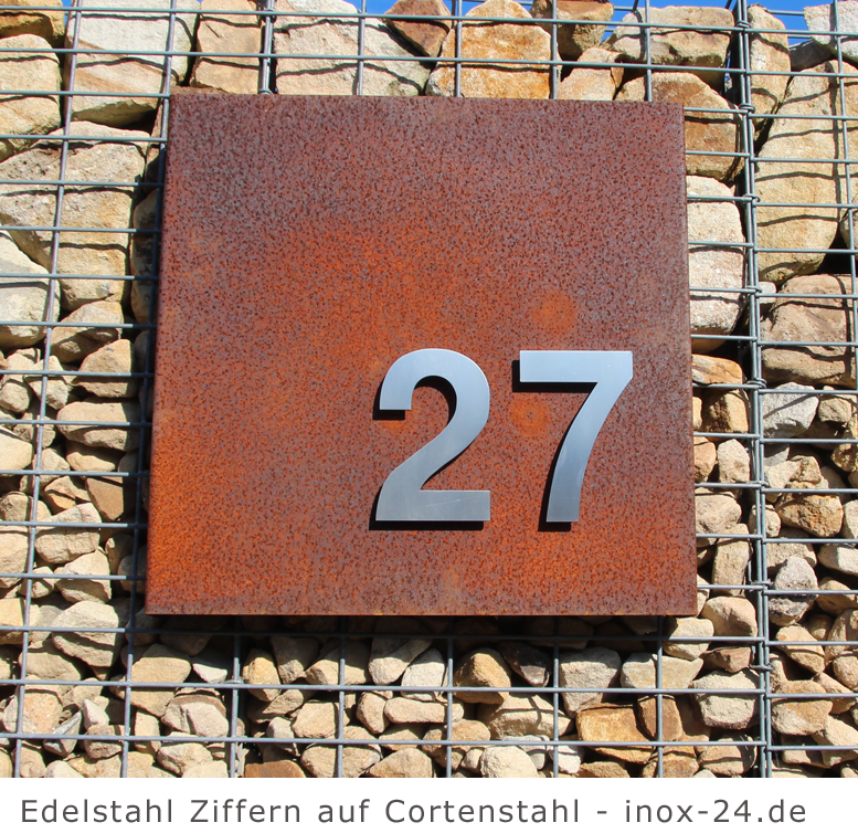 Edelstahlziffern auf Cortenstahl Cor-ten Stahl