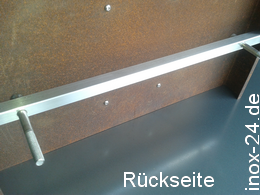 (ggf. etwas Luft zwischen Cortenstahl und Wand lassen, um eventuell -