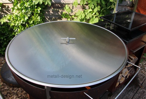 Der Deckel sorgt dafür, dass die Feuerstelle trocken gehalten wird und kann auch dafür verwendet werden,
