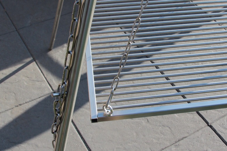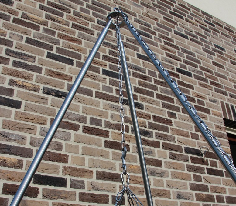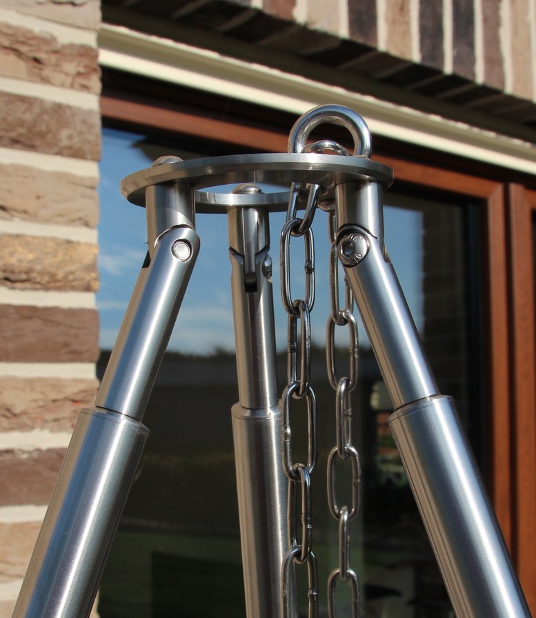 Hochwertiger Edelstahl Schwenkgrill mit einer Höhe von 195 cm.