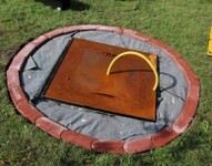 aus Cortenstahl, siehe Fotos. Stabil genug, um darauf rumzulaufen.