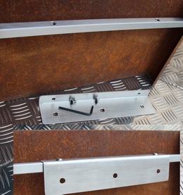 anschließend mit 2 Schrauben und dem Cortenstahlschild verschrauben.