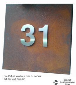 Edelstahlziffern auf Cortenstahl Cor-ten Stahl