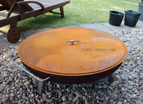 Der Deckel sorgt dafür, dass die Feuerstelle trocken gehalten wird und kann auch dafür verwendet werden,