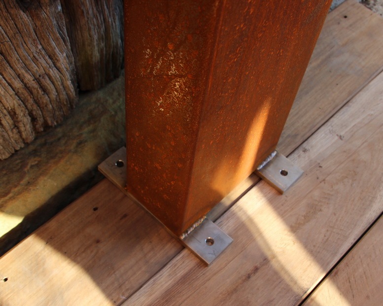 Beidseitig Cortenstahl, Verschweißt, Vorderseite gleich wie Rückseite.