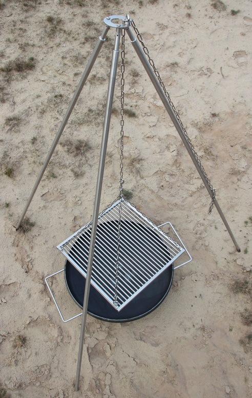 Hochwertiger Edelstahl Schwenkgrill mit einer Höhe von 195 cm.